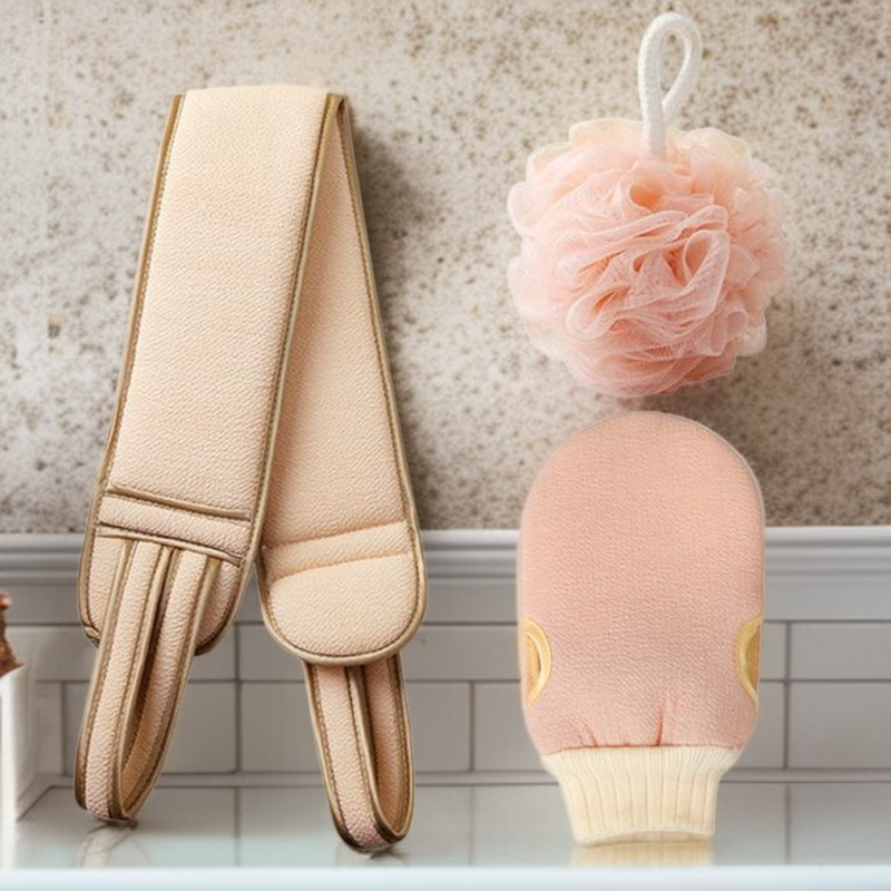 長型浴巾附背部搓揉花球